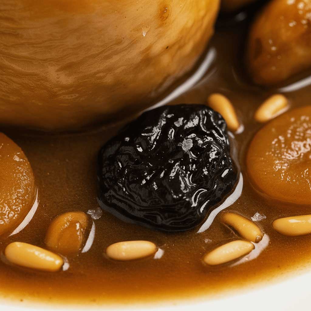 Pollastre de pagès (sencer) prunes i pinyons (8 pax.)